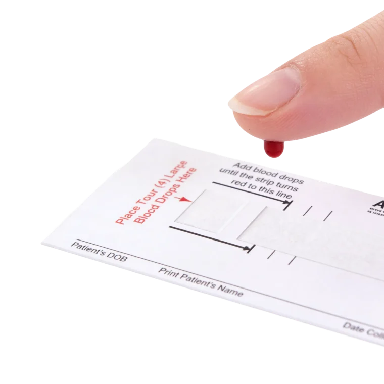 Your card can have one or two collection strips on it. Repeat the steps above for the second strip if applicable, ensuring again that the blood fills past the first line. Once all strips have been filled, put a bandaid on your finger. Let the card air dry for one hour.