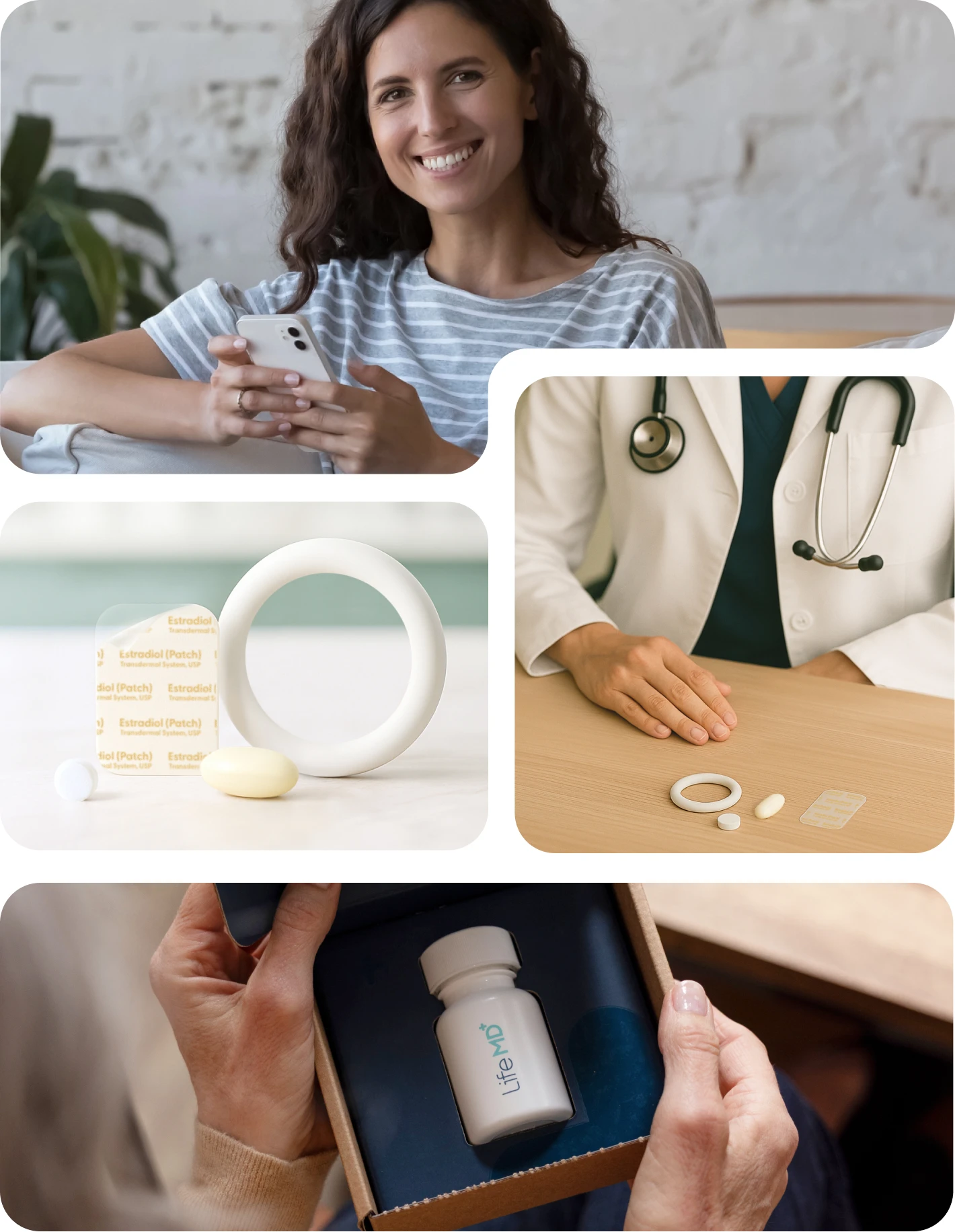 A licensed healthcare provider will create a treatment plan tailored to your needs and goals. Your care will include prescription HRT (when appropriate), secure messaging with your LifeMD care team, regular check-ins to assess your progress, and access to tools that support healthy aging — all from the convenience of your phone or computer. Medications included, if clinically appropriate, are one form of estradiol medication (patch, insert, or gel) and micronized progesterone if needed. The cost of an estradiol vaginal ring may vary and is not included with the program fee.