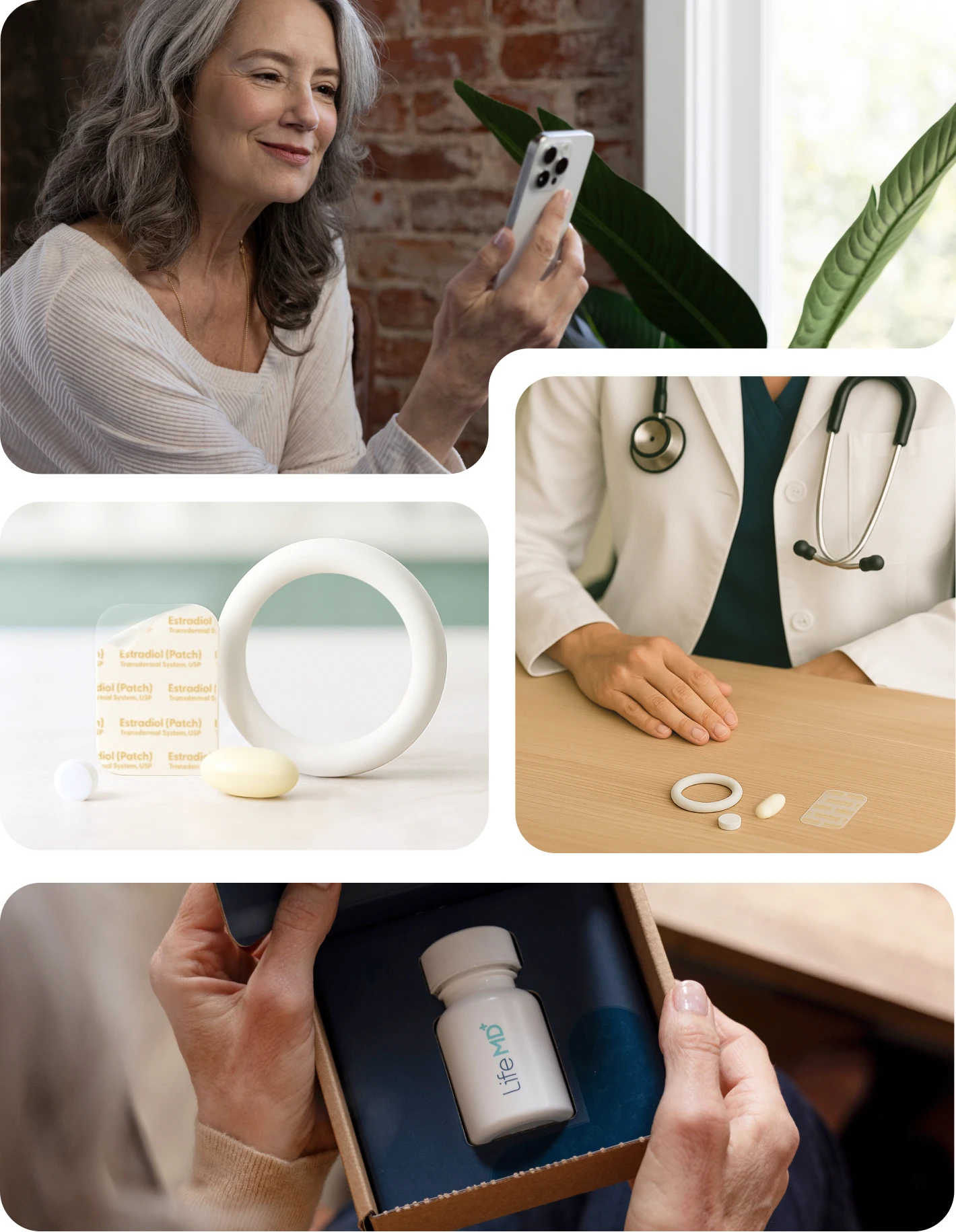 A licensed healthcare provider will create a treatment plan tailored to your needs and goals. Your care will include prescription HRT (when appropriate), secure messaging with your LifeMD care team, regular check-ins to assess your progress, and access to tools that support healthy aging — all from the convenience of your phone or computer. Medications included, if clinically appropriate, are one form of estradiol medication (patch, insert, or gel) and micronized progesterone if needed. The cost of an estradiol vaginal ring may vary and is not included with the program fee.
